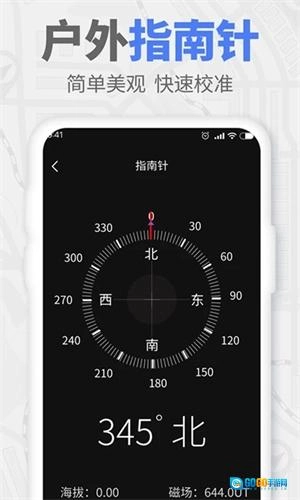指南针:具备指南针功能,能帮助你更快速地获取当前所在地的方向及经纬度信息。