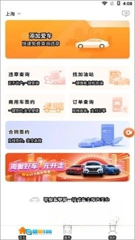 在车主服务板块,您能便捷获取违章查询、年检查询、保养手册等实用功能,此外还支持实时查看租车账单与付款提醒,系统也会为您定位周边的加油站和充电桩。