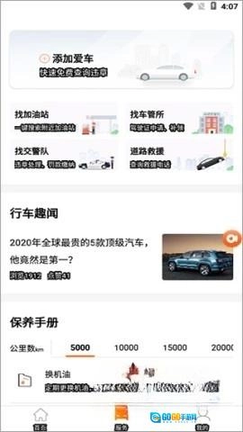 在首页添加您的爱车,就能实时查看并接收车辆违章、年检、保险及租赁账单等信息的提醒,此外还能获取城市列表、天气情况和洗车指数。
