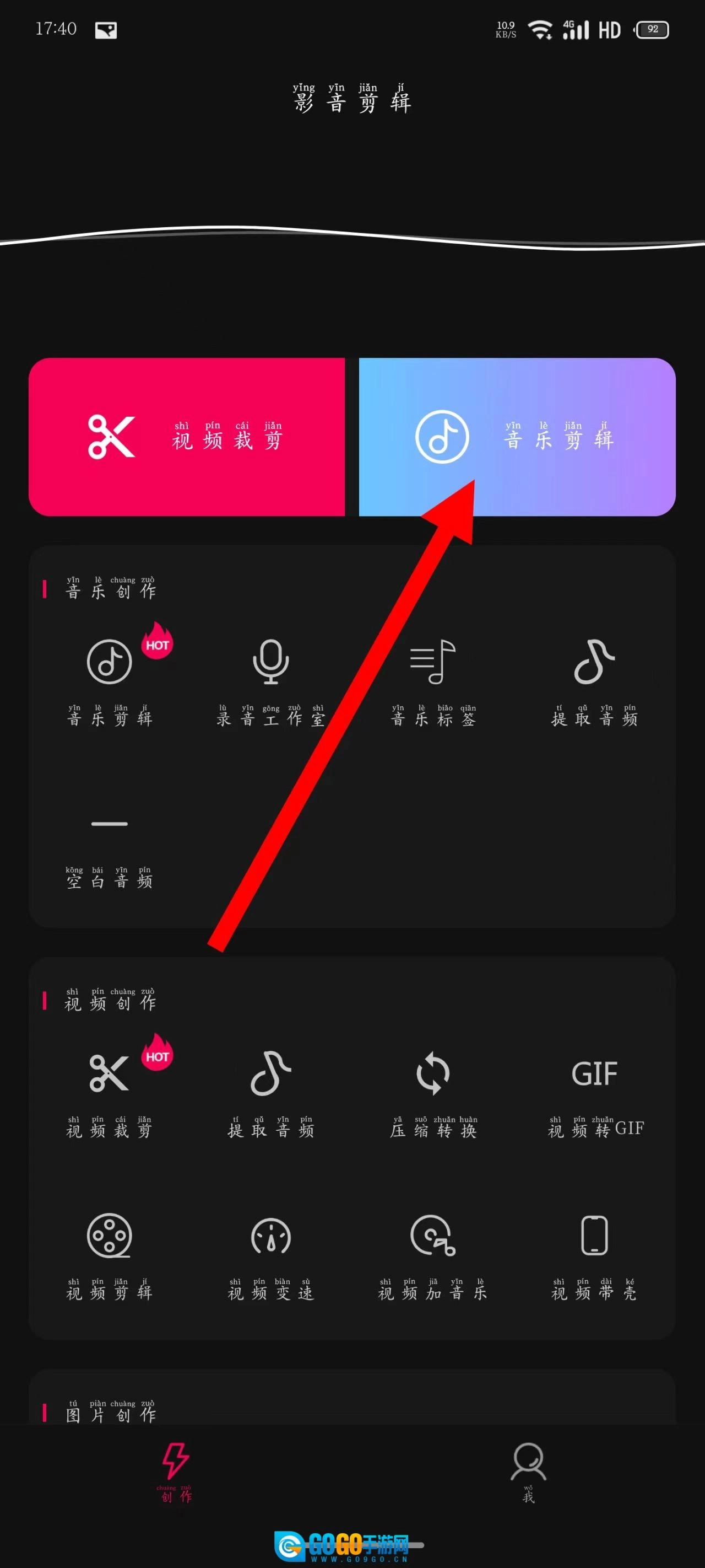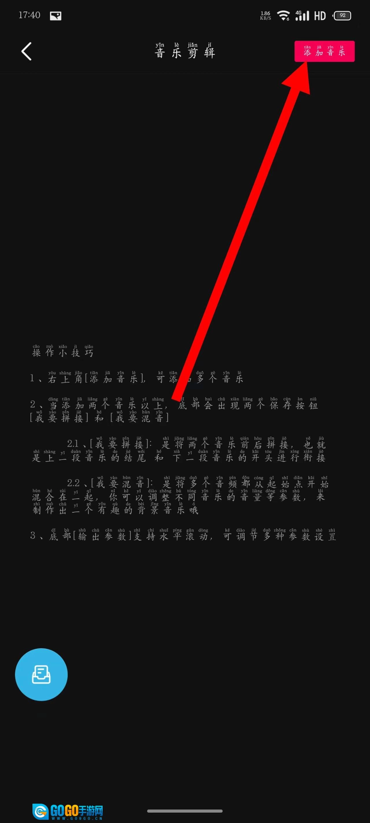 进入音乐剪辑页面后,点击右上角添加音乐。