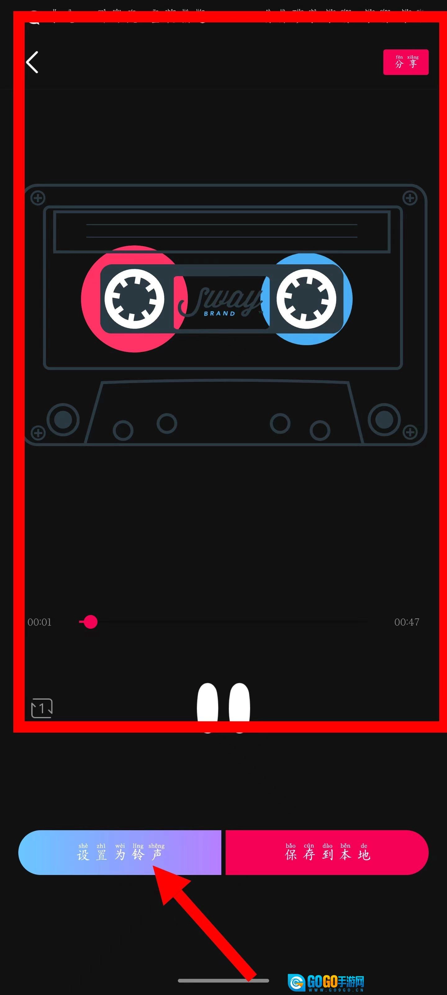 在最终页面,你可以选择将其设置为铃声,或者保存到本地,以此完成音乐剪辑的操作。