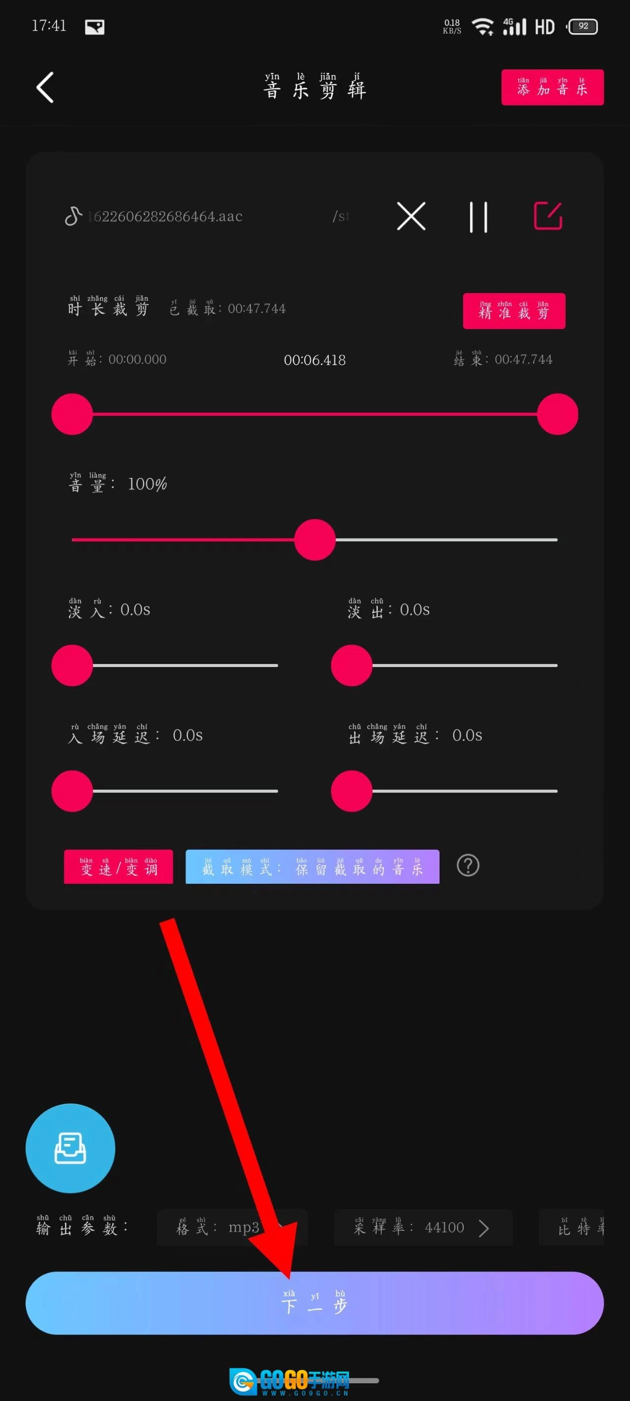 可对音乐的时长、音量大小、淡入淡出效果等各项参数进行设置,待设置完毕后,点击“下一步”按钮即可。