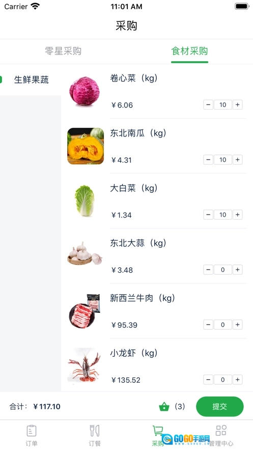 食材种类十分丰富,包含蔬菜、水果、肉类、海鲜、干货等多个品类,能够满足用户多样化的需求。
