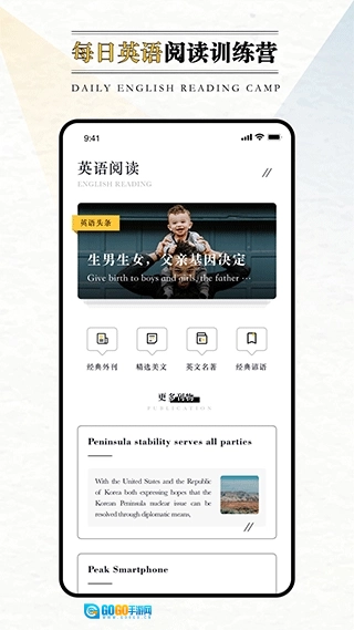 英语外刊阅读是一款汇集海量英文原著文章资源的手机阅读应用,软件内收录了大量英文原版刊物,内容十分丰富,资源也相当齐全。像《小王子》《傲慢与偏见》《爱丽丝梦游仙境》这类经典精彩的读物,在这里都能找到。它致力于让用户随时都能阅读到原汁原味的英文故事,与此同时,还能助力用户提升英语阅读能力,积累更多词汇,并且掌握更多英语语法知识与实用技巧。
