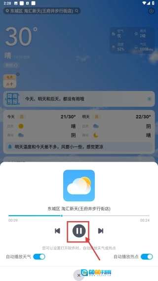 在天气页面,你可以找到并点击对应的播放按钮,通过播放天气音频来收听天气的语音播报内容。