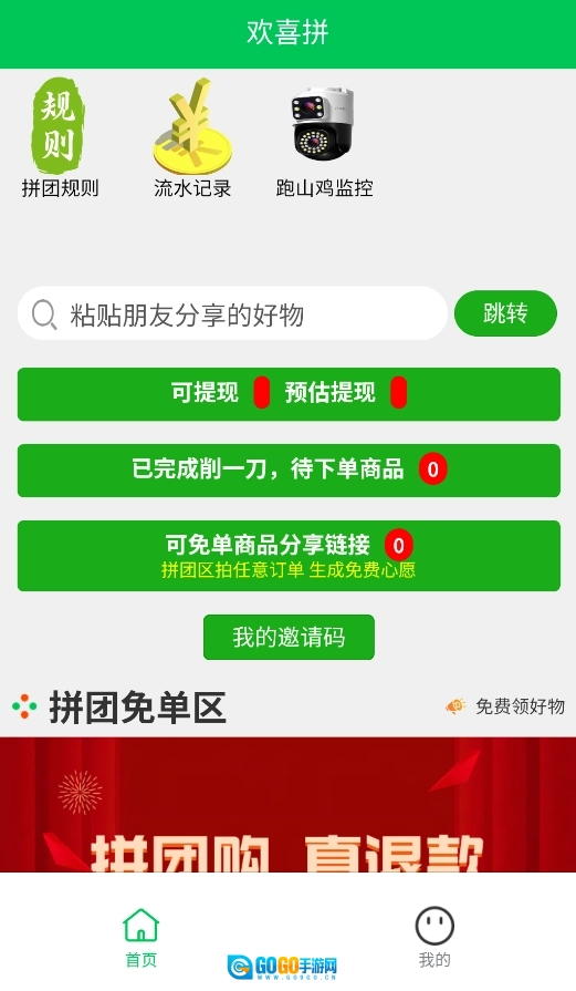 启动后,点击首页的“拼团指南”按钮,即可详细了解平台的拼团流程与参与规则。