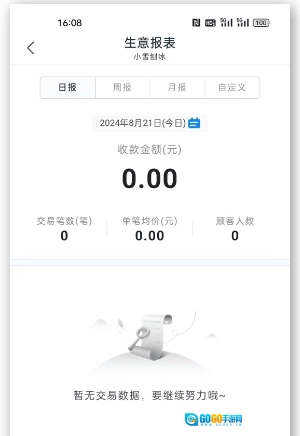 在拉卡拉首页,通过点击【生意报表】,或者依次点击【全部应用】与【生意报表】,都能进入该页面。此页面支持查看按日、周、月划分的交易汇总数据,也可自定义时间范围来查看相应的交易汇总数据。