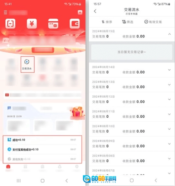 在拉卡拉首页,点击【商户数据】选项,或者先点击【全部】再选择【交易汇总】,都能进入该页面。