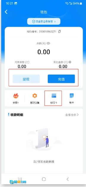 在【钱包】页面中,点击银行卡选项即可完成银行卡绑定操作,已绑定的银行卡支持用于充值和提现功能。