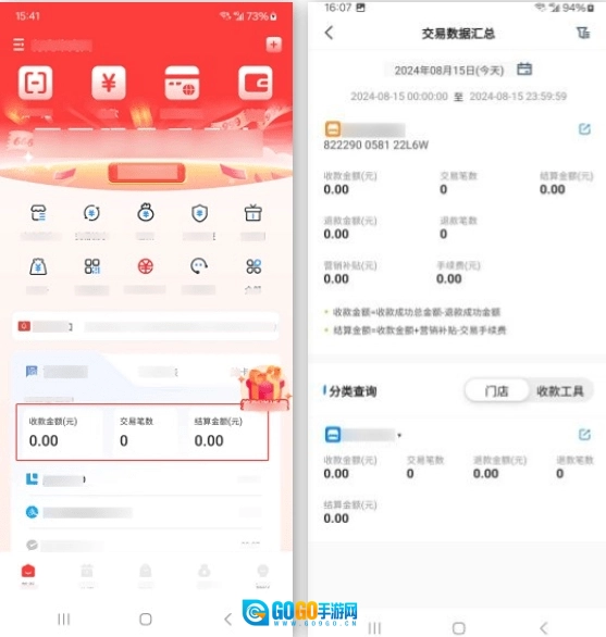 可查看当日的收款金额、交易笔数、结算金额、退款金额、营销补贴(由营销平台配置的活动)、退款笔数等汇总数据,也能通过筛选指定日期来查看这些数据。