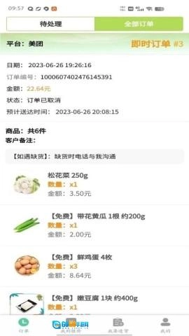 在订单中心,你能够随时查看生鲜订单,并且可以快速处理这些订单;操作便捷高效,能轻松应对各类订单。