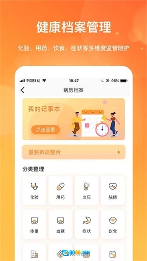 肾上线是一个专注于肾病领域的健康管理服务平台。该平台为用户提供血压、用药、脉搏、化验、血糖等多维度的身体监测功能,帮助用户及时了解自身健康状况,从而更有效地进行健康管理。感兴趣的朋友不妨来肾上线体验一下吧。