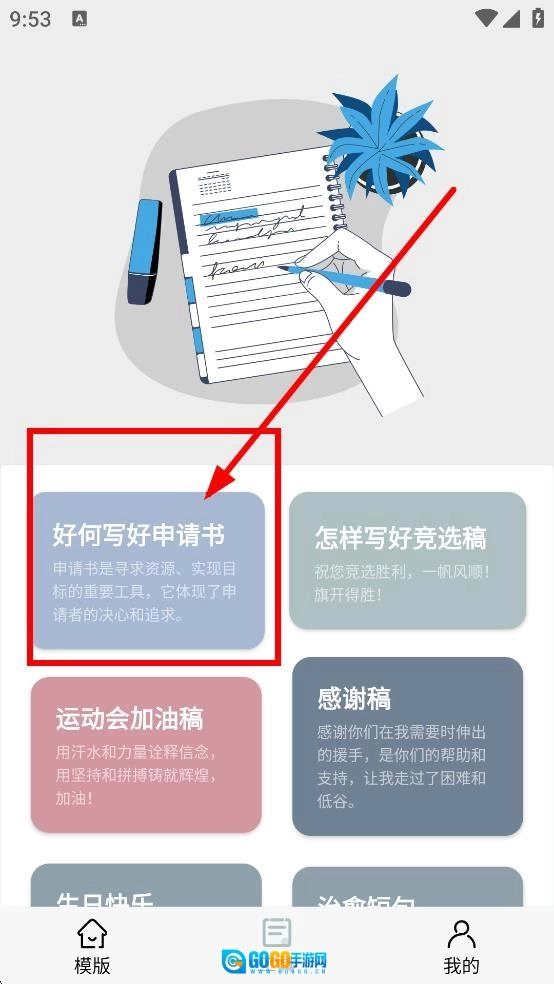 在模板页面中,点击“如何写好申请书”这一选项,就能查看与申请书写作相关的指导内容。