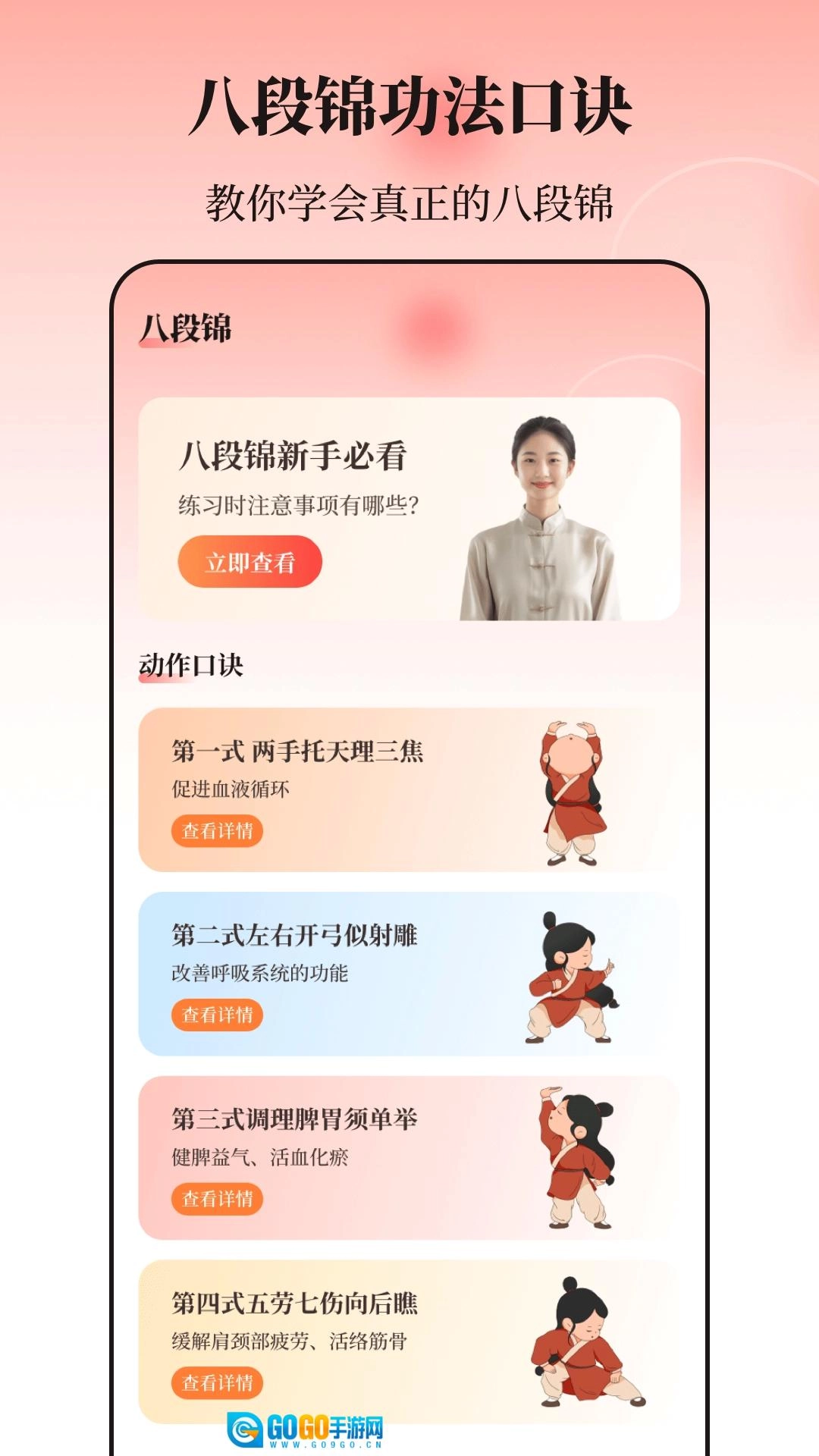 八段锦植根于传统养生功法,同时融合现代科学健康管理的先进理念,助力用户养成健康的生活方式,实时追踪身体各项健康指标,达成身心的全方位调养。借助体系化的动作教学、智能便捷的打卡系统以及多维度的健康监测模块,能让传统养生的智慧轻松融入快节奏的现代生活场景。不管是长期伏案的都市白领,还是注重健康的中老年群体,都能在此寻觅到契合自身需求的养生计划。