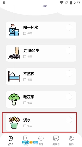 完成目标后,你只需点击目标旁的圆圈,就能打卡成功。