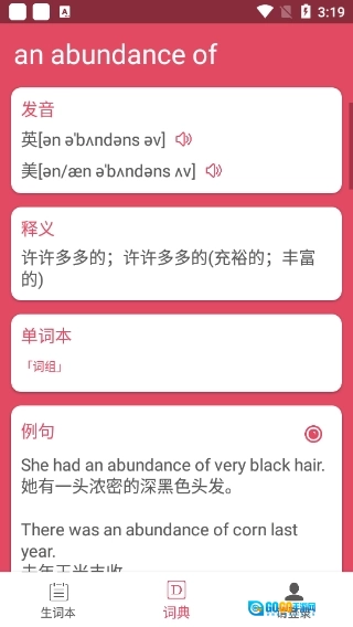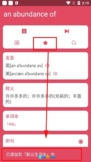 收藏夹功能:用户在使用过程里,能够把常用的单词或者短语添加到收藏夹中,这样便于之后进行查阅。