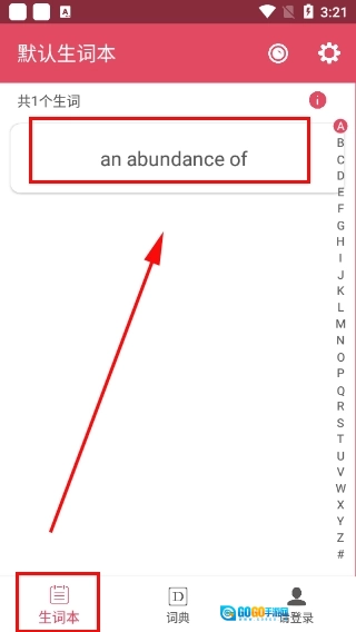 然后进入“生词本”就可以学习背诵收藏的单词了
