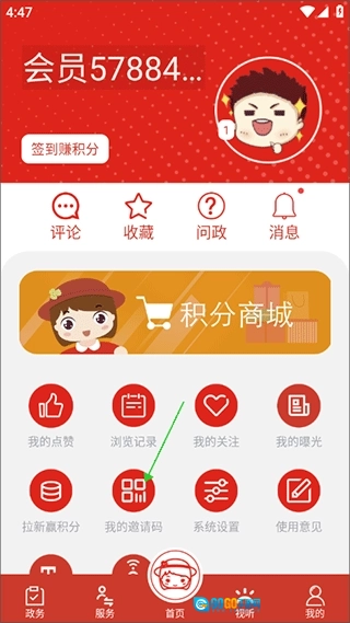 登录成功后会自动跳转至“我的”页面,接着点击左侧靠下位置的“我的邀请码”选项。