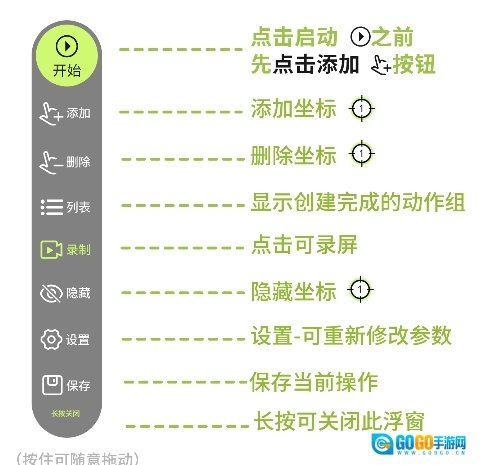 点击悬浮窗,就能展开以下功能,可根据点击需求进行添加点击需求、录制等操作。