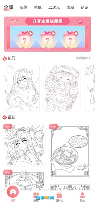 首页展示着最新的热门模板,你也可以通过开盲盒的方式获取隐藏的趣贴图。