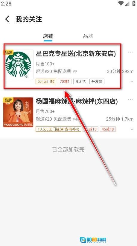 最后进入就可以看到关注的店铺了。
