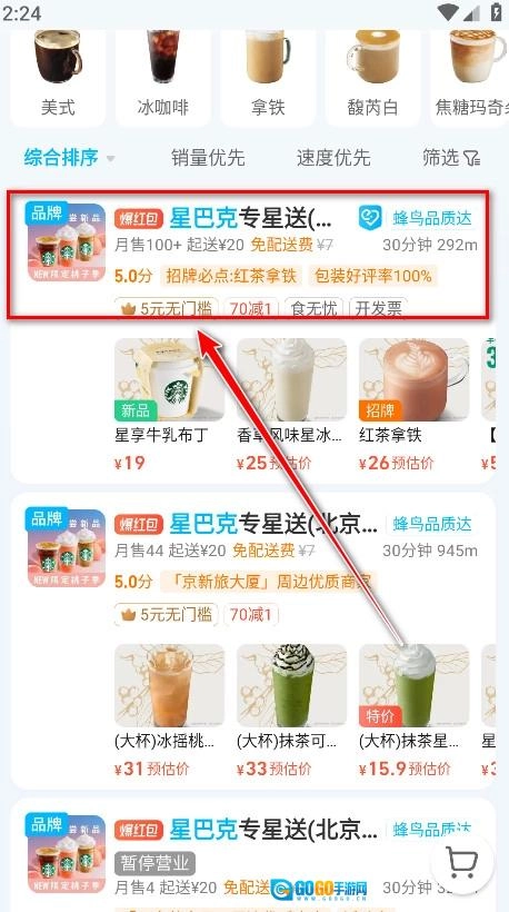 进入软件,选择支持自取的商家进行点餐。
