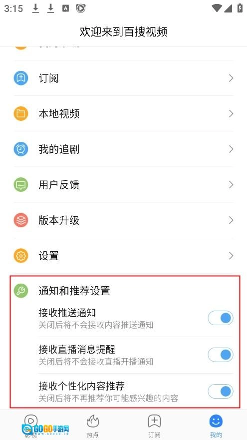2、在我的界面滑到最底下,将通知和推荐设置里的内容全部关闭即可;