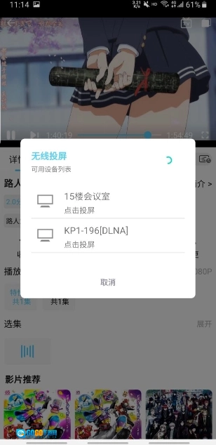最后完成搜索并连接投屏设备后即可开始播放,需要注意的是手机与投屏设备需处于同一网络环境中。