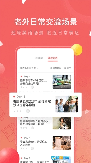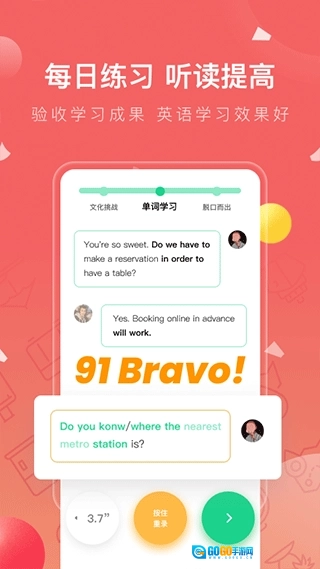 - 外教原声示范发音,搭配语音评分系统实时反馈,借助科学训练方法提升口语能力,助力强化英文思维模式。