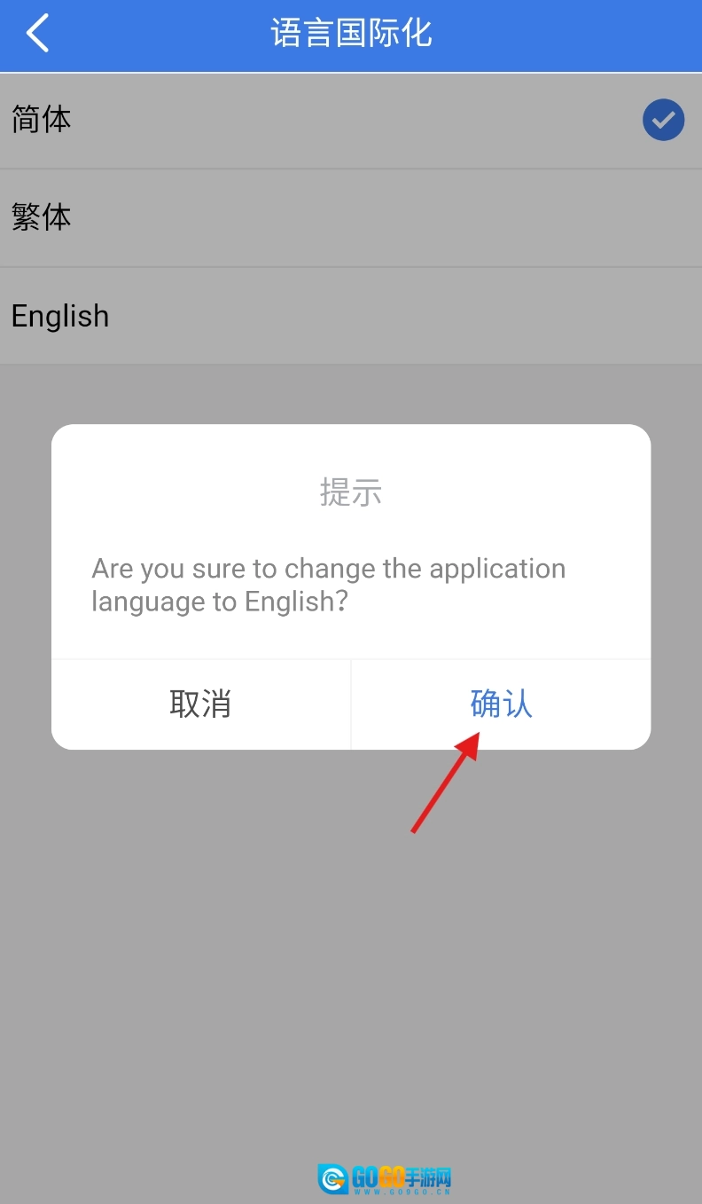 阅读弹出的提示内容,确认信息准确无误后,点击确定按钮,即可完成软件语言到英文的切换。