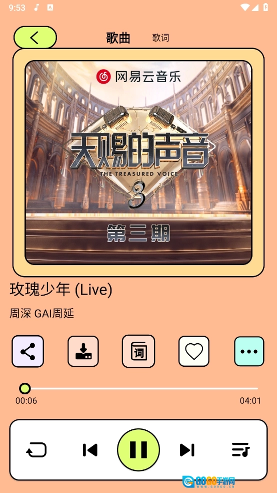 最后在音源中选择喜欢的歌曲,点击播放即可。