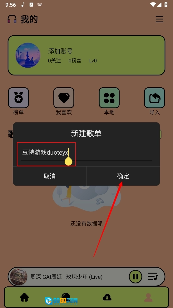 然后输入新建歌单的名字,点击"确定"。