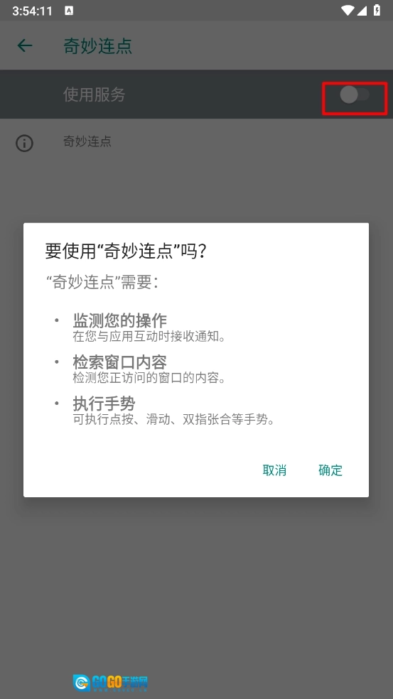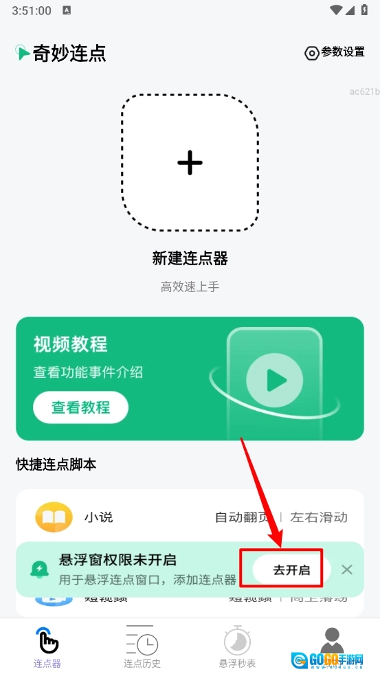 如图所示,打开奇妙连点的悬浮窗开关即可。