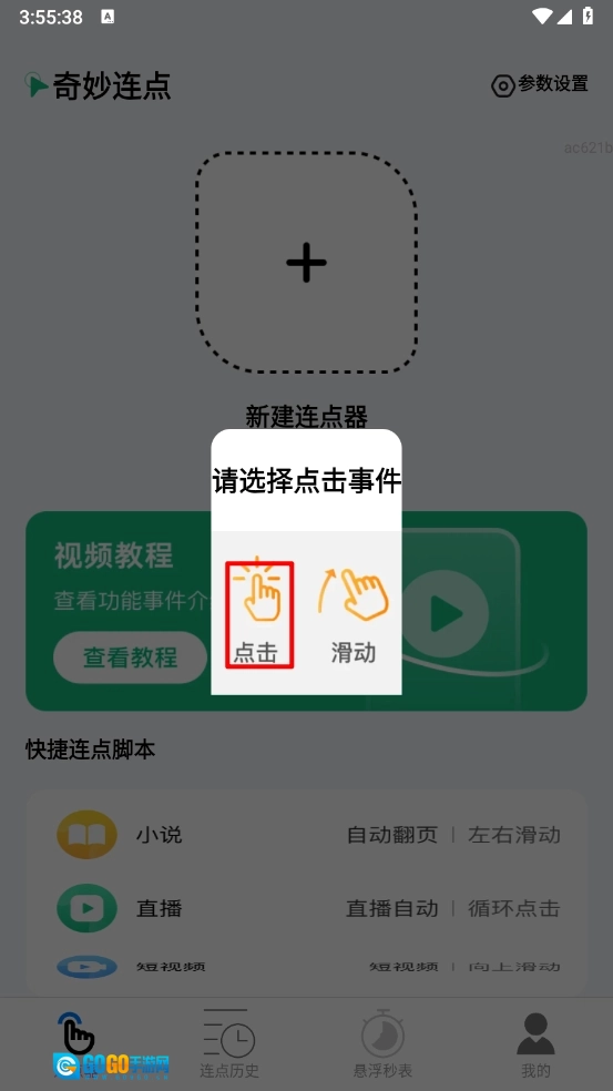 然后在主页点击"+"号新建连点器,选择"单击"。