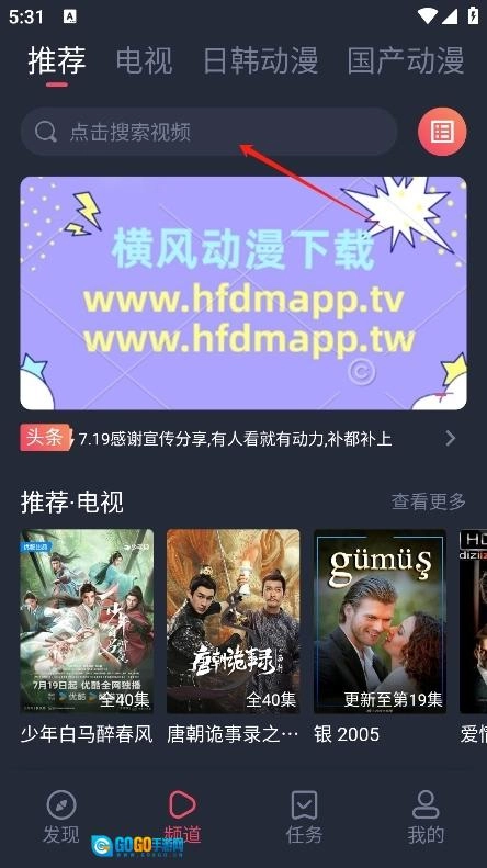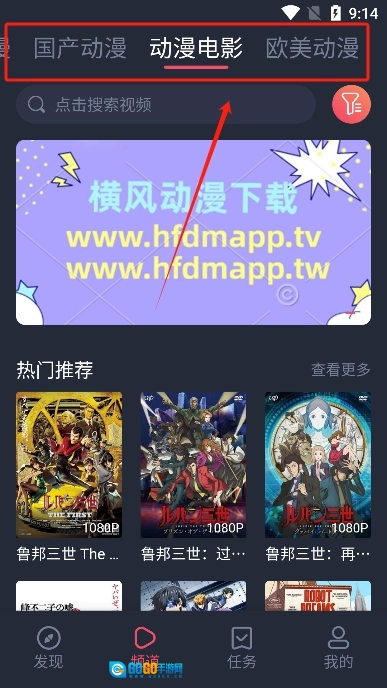 打开软件,在"频道"板块选择喜欢的动漫进入。