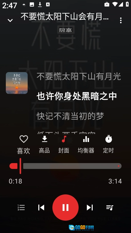 接着随意挑选一首自己感兴趣的歌曲,这里就以“不要慌太阳下山会有月光”这首歌来举例。