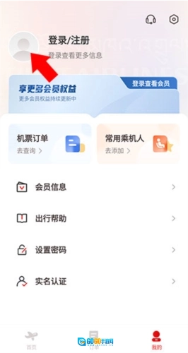 进入【我的】页面后,点击顶部的头像,登录西藏航空账号。