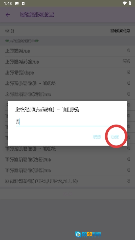 弱网控制协议的设置建议:选择“UDP”协议,因为部分游戏在UDP协议下对延迟的敏感度更高。