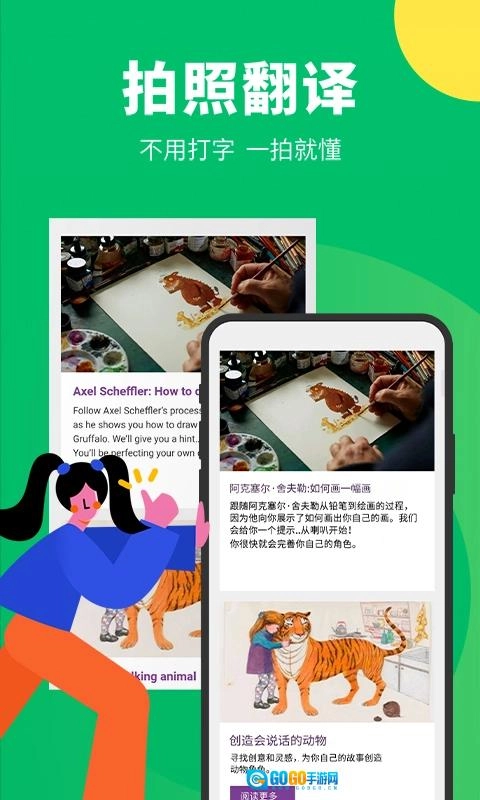 拍照翻译:不管是图书、试题、路牌、菜单,还是广告单,只要随手拍张照片,就能马上得到翻译结果。