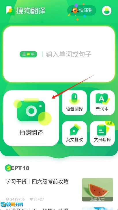 会自动识别并翻译图片中的文字,支持AR实景翻译。