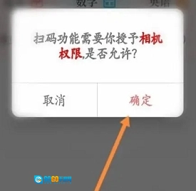 点击扫一扫图标: 点击该图标即可启动扫一扫功能,同时请同意授予相机权限;