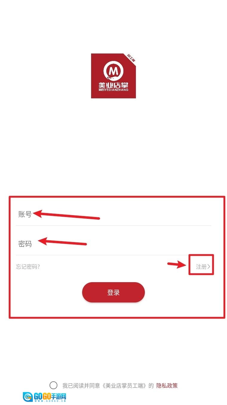 打开应用后输入账号和密码就能登录,要是还没注册的话,请点击右边的「注册」按钮进入注册页面。