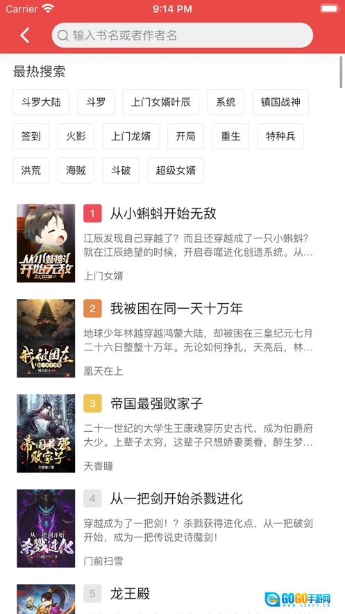 用户只需输入关键字,即可快速搜索到想看的小说。