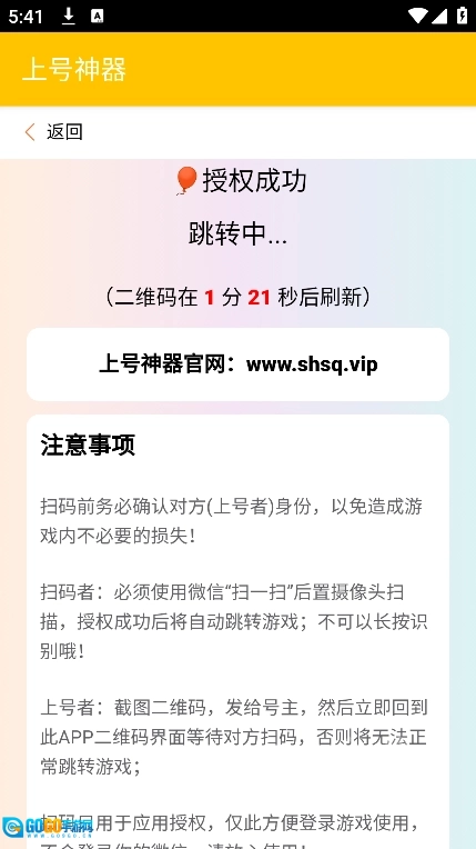 扫码仅用于应用授权,仅为方便登录游戏,不会登录您的微信,请放心使用!