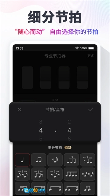用户可自由设定个性化节拍,根据乐器掌握程度调整;