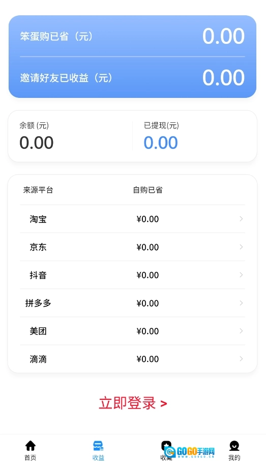 进入“收益”板块,就能直观看到各平台的累计节省金额以及优惠明细统计情况。