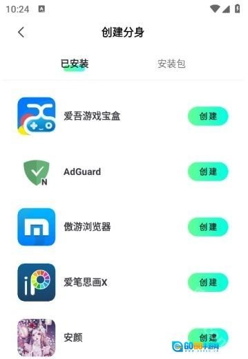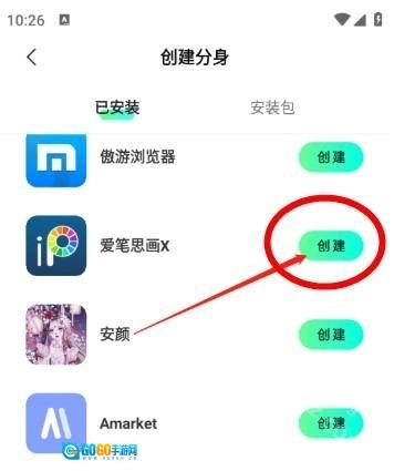 选定需要分身的应用,点击“创建”按钮进行操作。