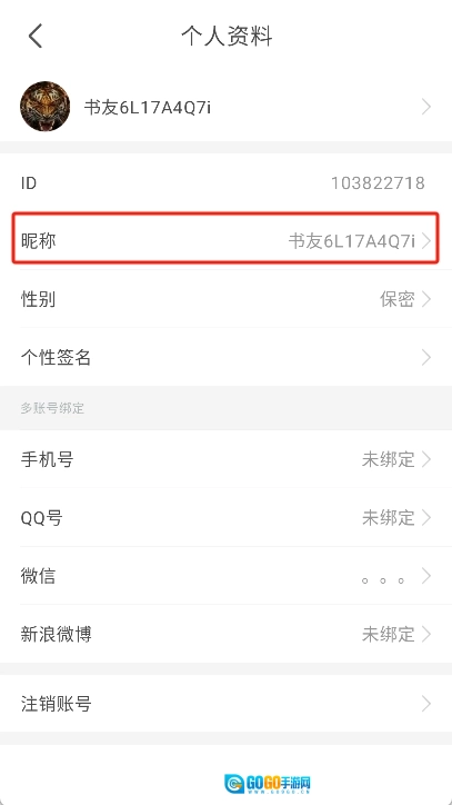 然后进入个人资料页面后,找到并点击【昵称】这一选项。