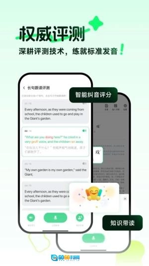 这款产品是专门为小学生外语学习打造的,重点突出智能点读与权威评测两大核心功能。