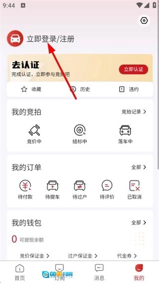 进入我的页面后,点击“立即登录/注册”区域,即可进入登录界面。